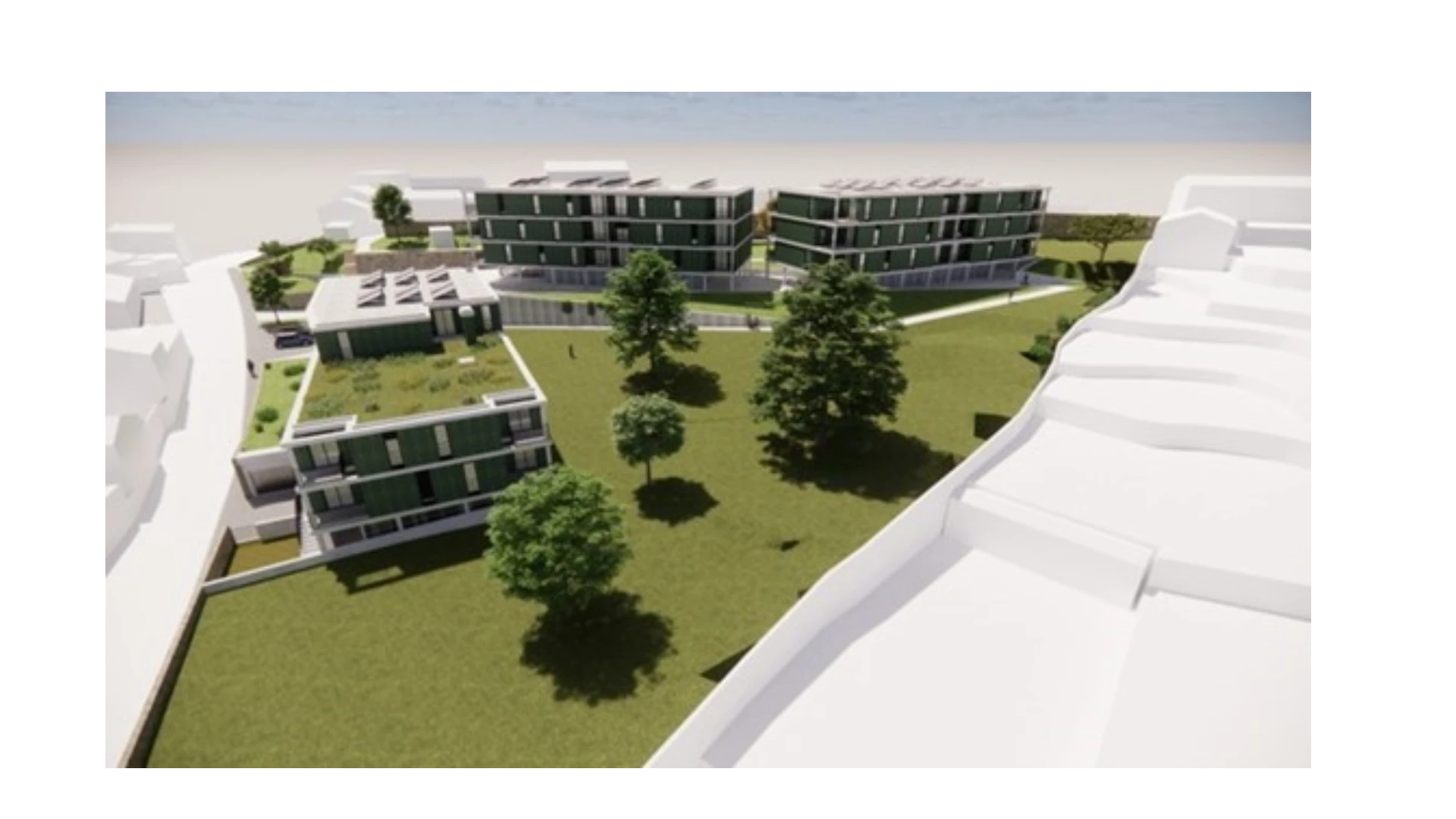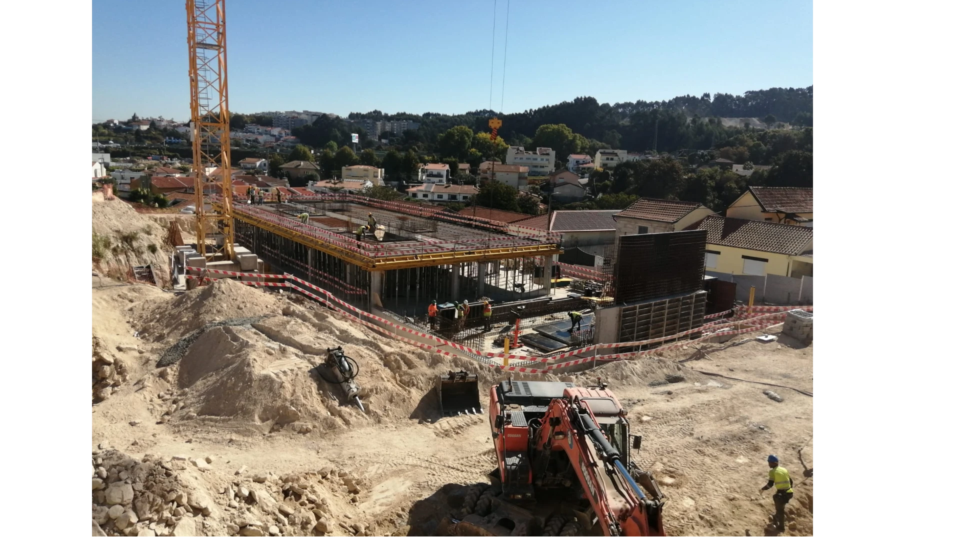 A obra em execução, localiza-se em Águas Santas, no concelho da Maia, tendo como objetivo a construção de 42 fogos habitacionais, com tipologias entre T1, T2, T3 e T4, distribuídas por três blocos independentes.